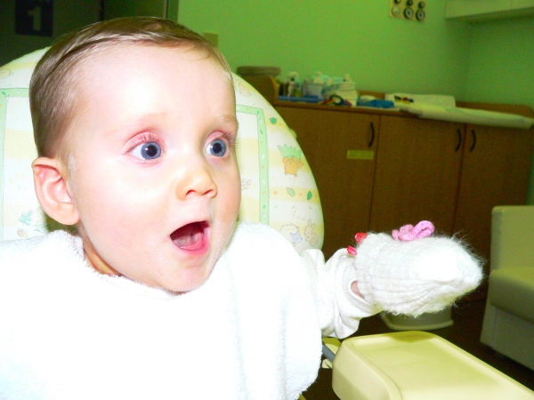 Jo a jestli vás zajímá proč mám jednu rukavičku tak tam mám ještě nějaké "čudlíky", prý kanila je to. Snad mě to brzo sundají abych mohla kousat sůšu obouruč. Mám totiž na sůši od pátku první zoubek, heč :-D